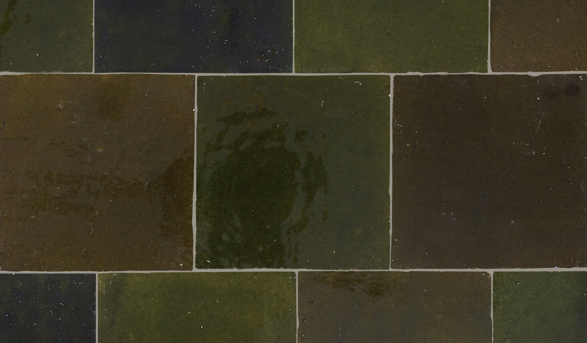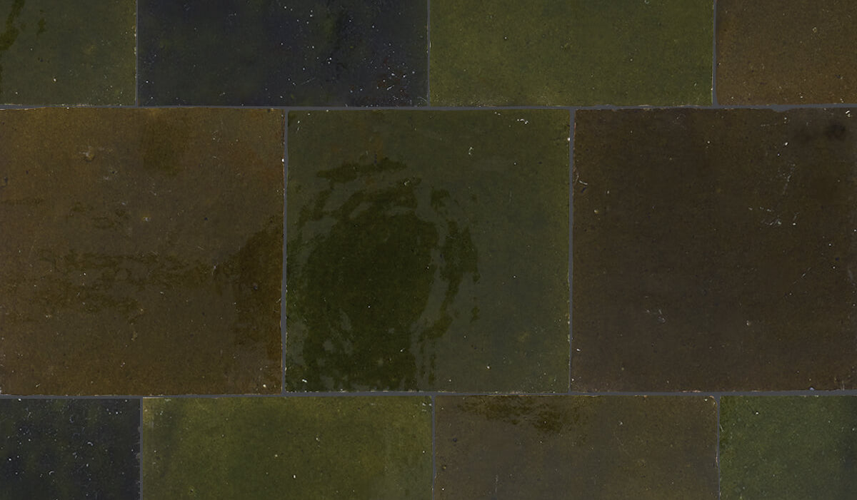 Dybe glasurer der indeholder flere farvetoner og med store variationer fra flise til flise. Den århundredgamle tradition med at forme, glasere, brænde og skære Zellij-fliser udføres stadig af dygtige håndværkere, helt uden moderne værktøjer og udelukkende for fod og hånd, når leret trampes og formes. Forvent unikke glasurer med en høj grad af variation.