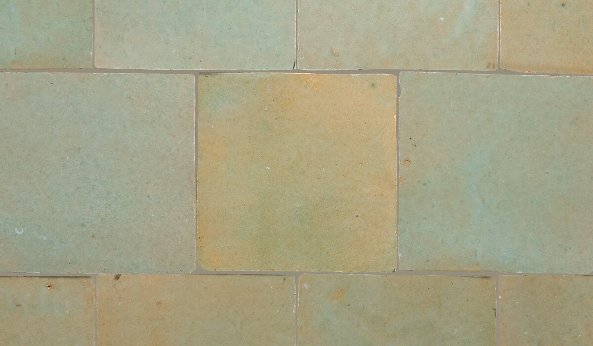 Dybe glasurer der indeholder flere farvetoner og med store variationer fra flise til flise. Den århundredgamle tradition med at forme, glasere, brænde og skære Zellij-fliser udføres stadig af dygtige håndværkere, helt uden moderne værktøjer og udelukkende for fod og hånd, når leret trampes og formes. Forvent unikke glasurer med en høj grad af variation.
