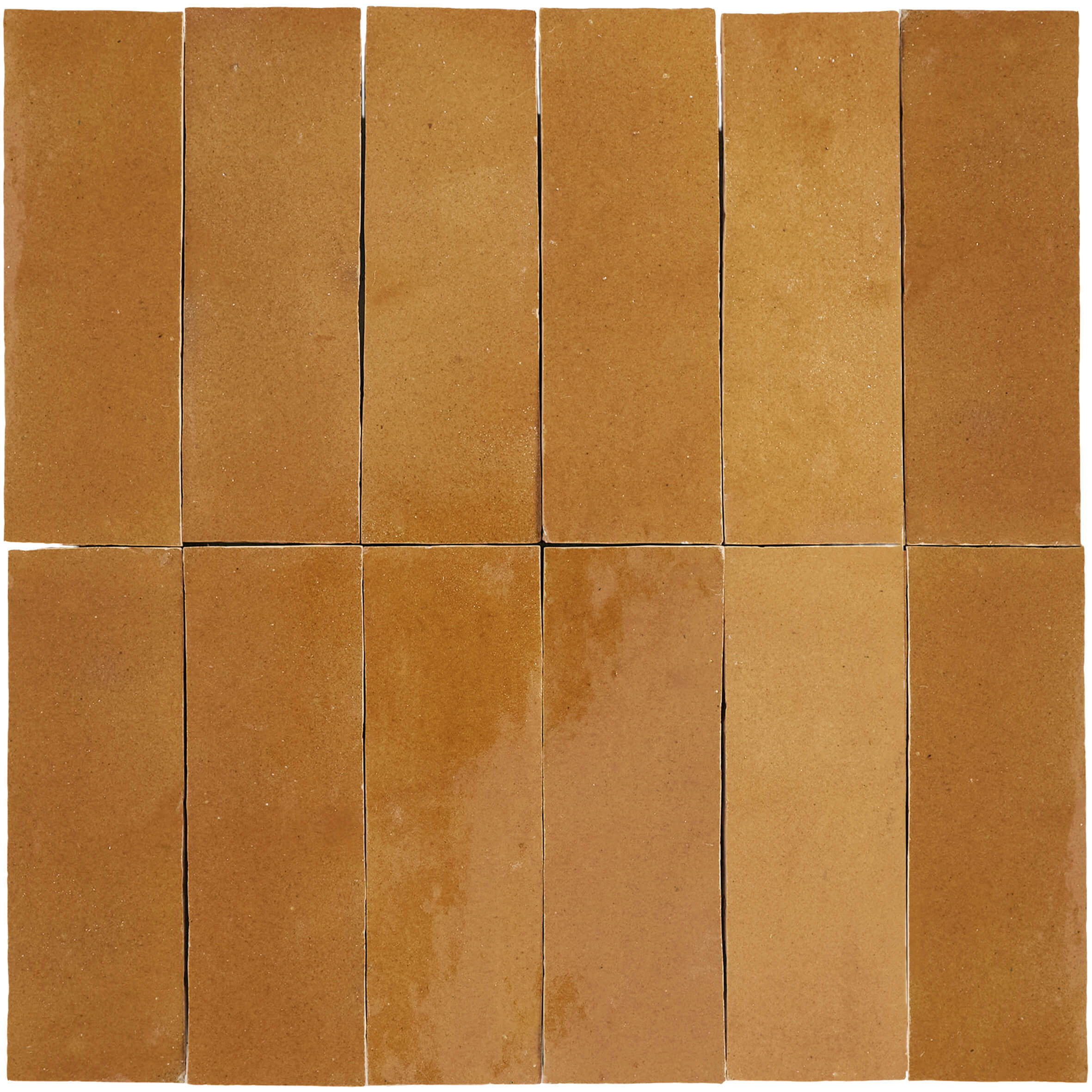 Dybe glasurer der indeholder flere farvetoner og med store variationer fra flise til flise. Den århundredgamle tradition med at forme, glasere, brænde og skære Zellij-fliser udføres stadig af dygtige håndværkere, helt uden moderne værktøjer og udelukkende for fod og hånd, når leret trampes og formes. Forvent unikke glasurer med en høj grad af variation.