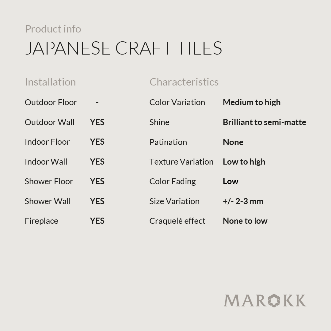 I samarbejde med en af Japans førende producenter har vi skabt denne kollektion af helt særlige fliser med klassiske japanske glasurer. Sento-fliserne brændes ved ekstremt høje temperaturer på op til 1300 grader i over 36 timer, hvilket resulterer i en særdeles stærk overflade der kan bruges på gulv og væg i vådrum, køkken, etc. SENTO-flisens toner varierer fra flise til flise og har små imperfektheder i glasuren, hvilket gør hver flise til et stykke kunsthåndværk. En flise der skal opleves i virkeligheden!