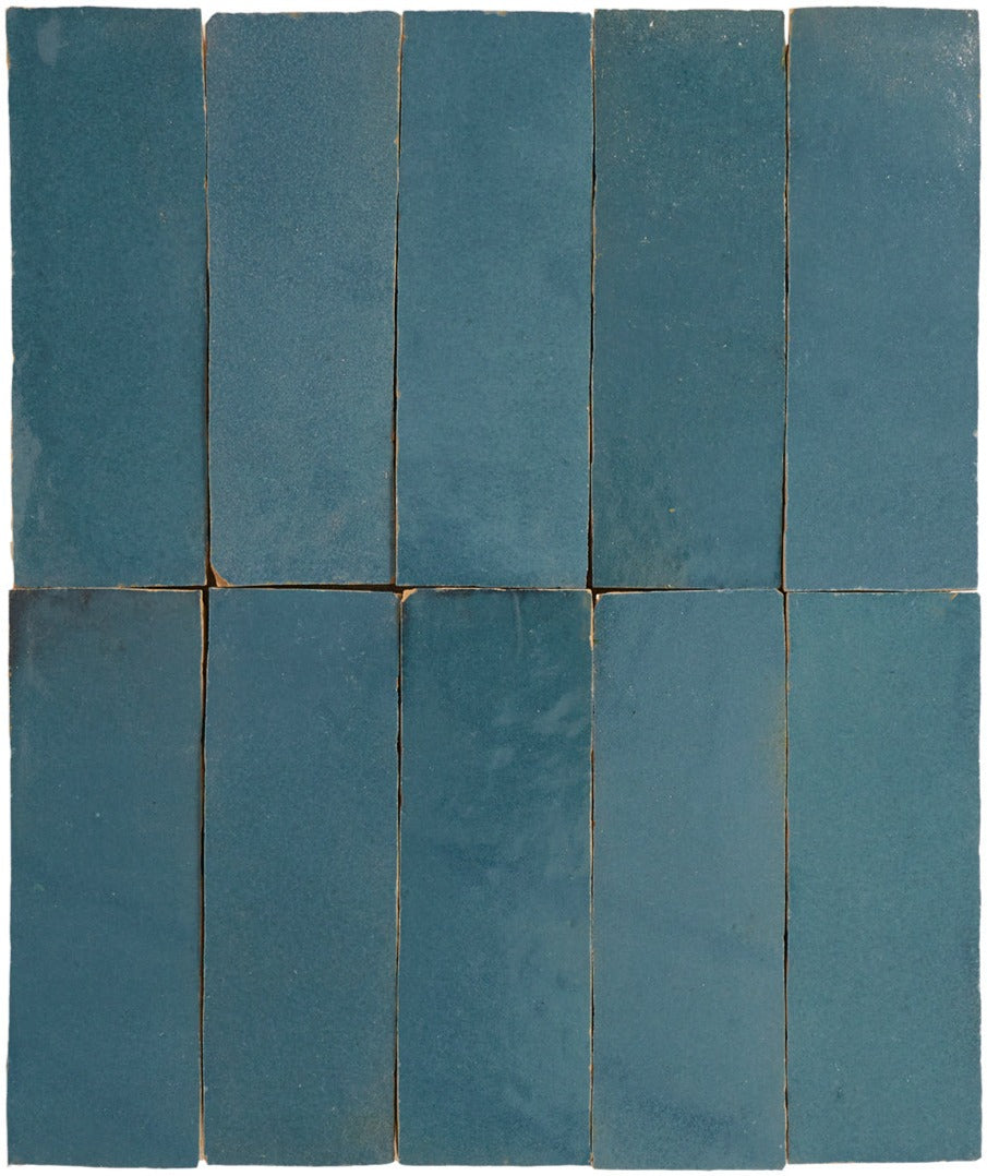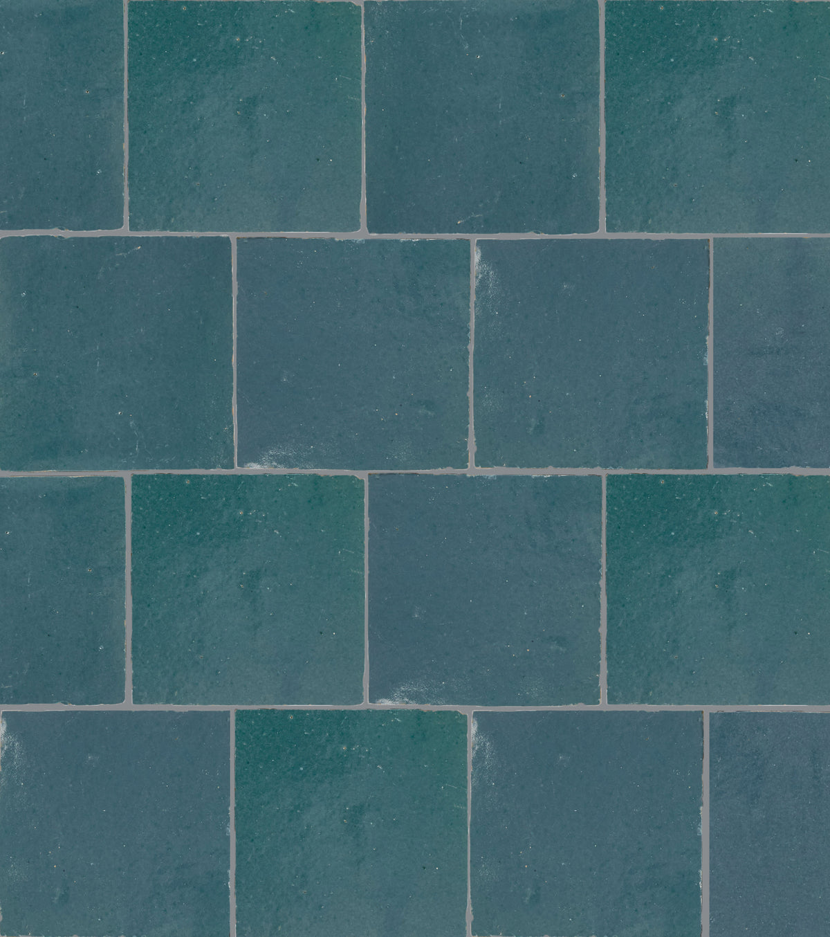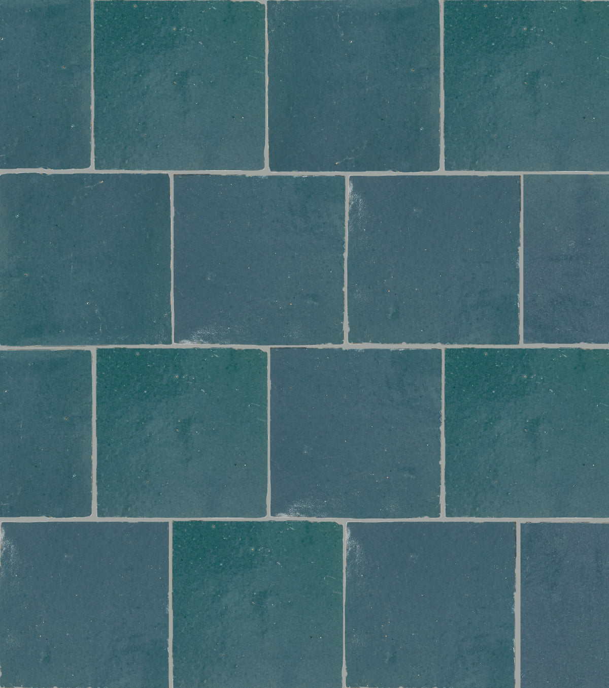 Dybe glasurer der indeholder flere farvetoner og med store variationer fra flise til flise. Den århundredgamle tradition med at forme, glasere, brænde og skære Zellij-fliser udføres stadig af dygtige håndværkere, helt uden moderne værktøjer og udelukkende for fod og hånd, når leret trampes og formes. Forvent unikke glasurer med en høj grad af variation.