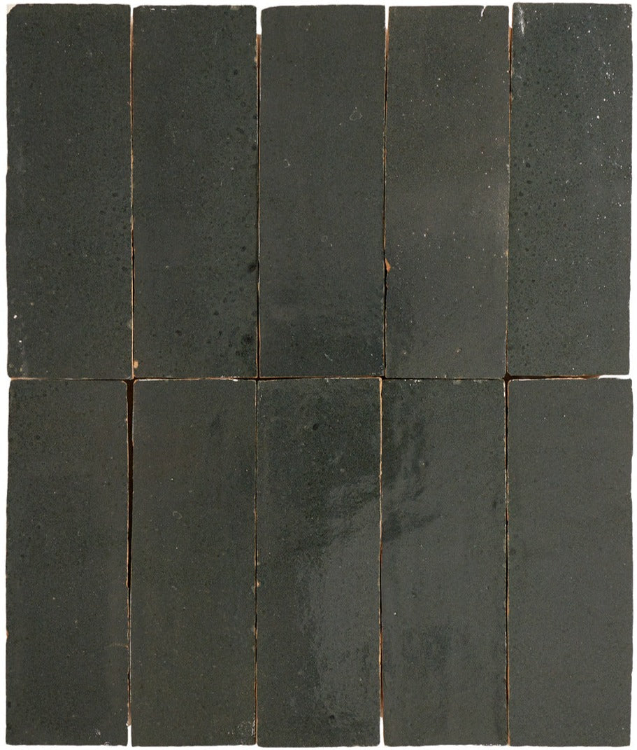 Dybe glasurer der indeholder flere farvetoner og med store variationer fra flise til flise. Den århundredgamle tradition med at forme, glasere, brænde og skære Zellij-fliser udføres stadig af dygtige håndværkere, helt uden moderne værktøjer og udelukkende for fod og hånd, når leret trampes og formes. Forvent unikke glasurer med en høj grad af variation.