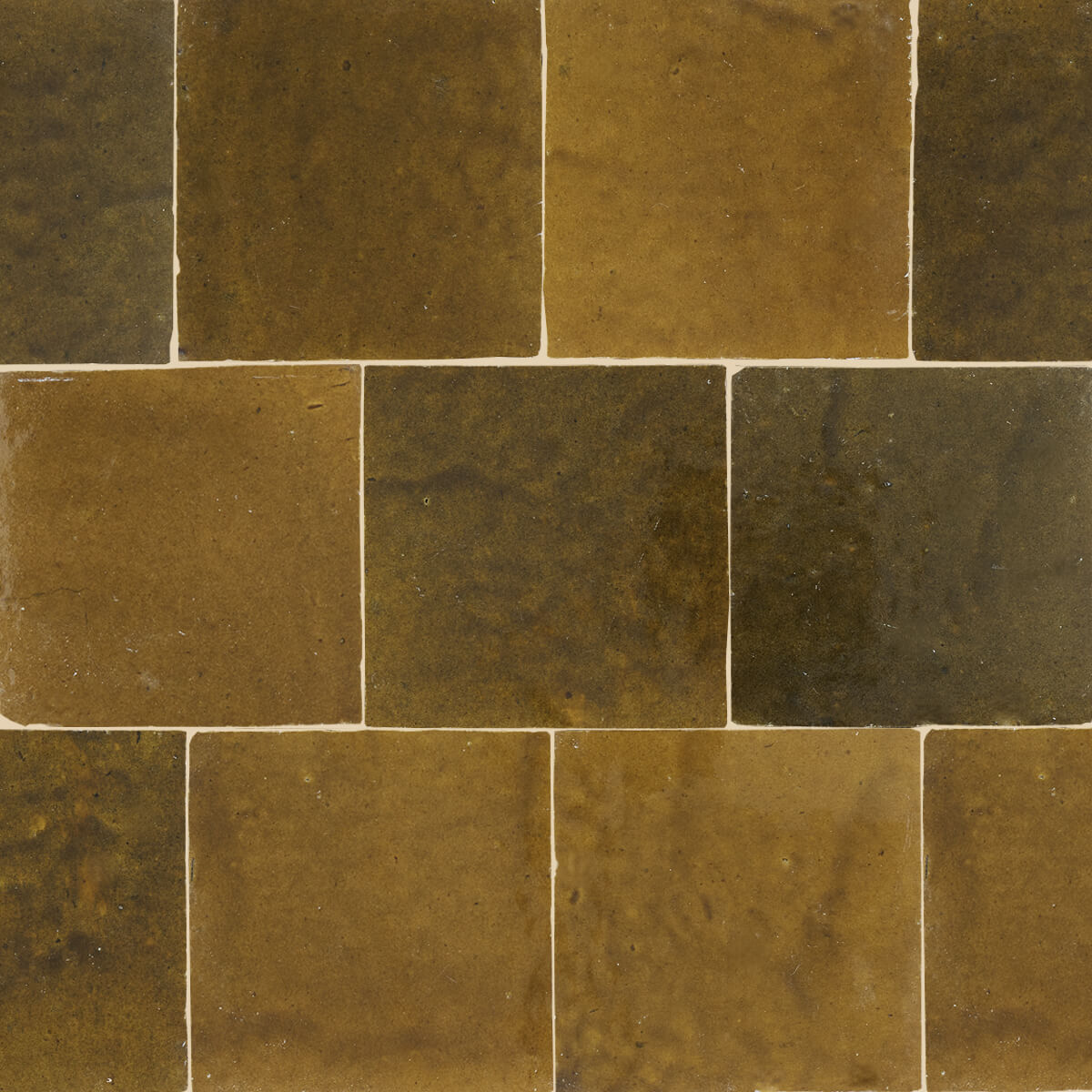 Dybe glasurer der indeholder flere farvetoner og med store variationer fra flise til flise. Den århundredgamle tradition med at forme, glasere, brænde og skære Zellij-fliser udføres stadig af dygtige håndværkere, helt uden moderne værktøjer og udelukkende for fod og hånd, når leret trampes og formes. Forvent unikke glasurer med en høj grad af variation.