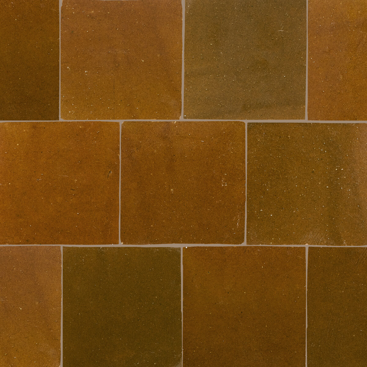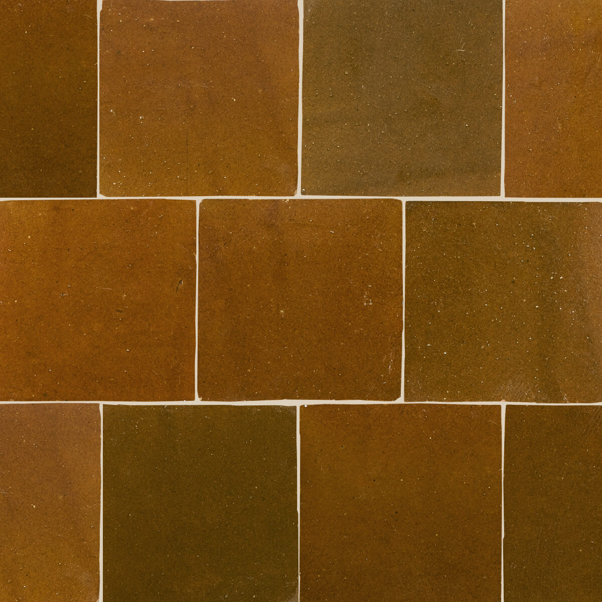 Dybe glasurer der indeholder flere farvetoner og med store variationer fra flise til flise. Den århundredgamle tradition med at forme, glasere, brænde og skære Zellij-fliser udføres stadig af dygtige håndværkere, helt uden moderne værktøjer og udelukkende for fod og hånd, når leret trampes og formes. Forvent unikke glasurer med en høj grad af variation.