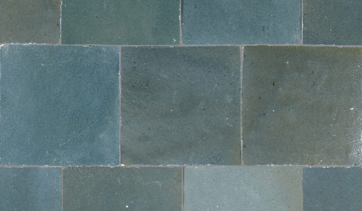 Dybe glasurer der indeholder flere farvetoner og med store variationer fra flise til flise. Den århundredgamle tradition med at forme, glasere, brænde og skære Zellij-fliser udføres stadig af dygtige håndværkere, helt uden moderne værktøjer og udelukkende for fod og hånd, når leret trampes og formes. Forvent unikke glasurer med en høj grad af variation.