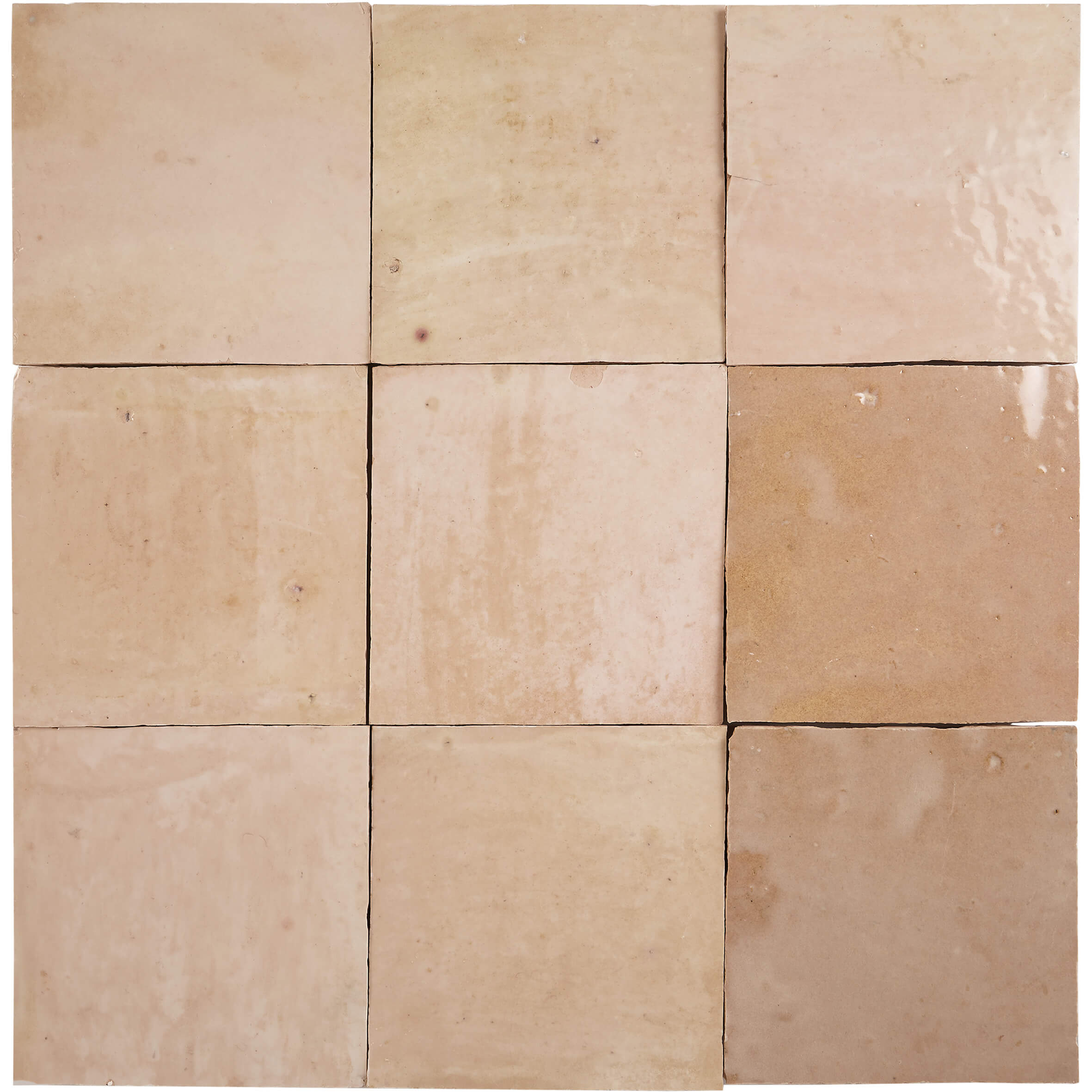 Dybe glasurer der indeholder flere farvetoner og med store variationer fra flise til flise. Den århundredgamle tradition med at forme, glasere, brænde og skære Zellij-fliser udføres stadig af dygtige håndværkere, helt uden moderne værktøjer og udelukkende for fod og hånd, når leret trampes og formes. Forvent unikke glasurer med en høj grad af variation.