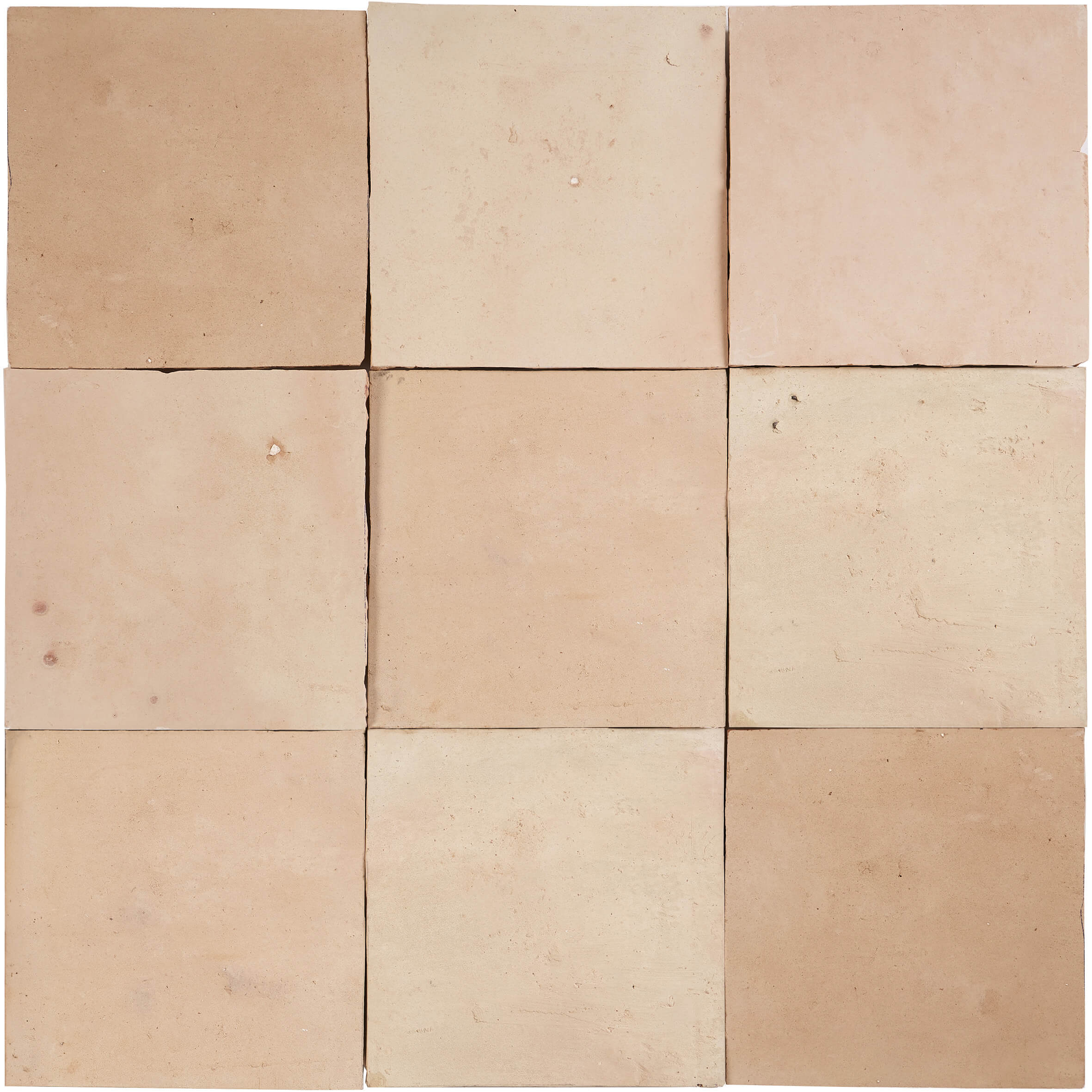 Den århundredgamle tradition med at forme, glasere, brænde og skære Zellij-fliser udføres stadig af dygtige håndværkere, helt uden moderne værktøjer og udelukkende for fod og hånd, når leret trampes og formes. Denne uglaserede version af zellij består af ren brændt terracotta. Fliserne kræver imprægnering og voks efter installation.